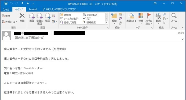 ● メールの表題、文面は自治体様によって若干異なることがあります。