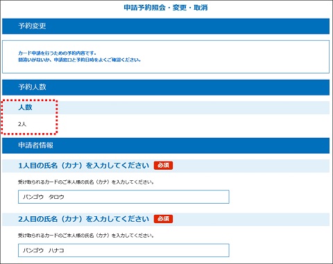 人数を変更されたい場合は、予約を取り消し、再度新しく予約を登録してください。