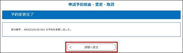 ● 予約日時の都合が悪くなった場合、申請予約情報の変更を行うことにより、再予約できます。