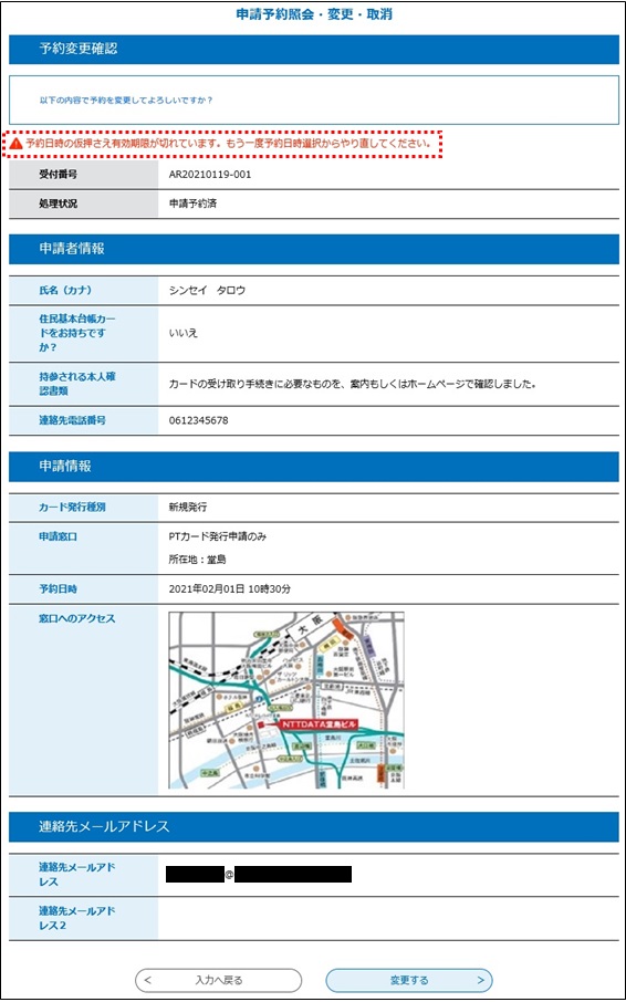 ◆ 予約変更確認画面での仮押さえ有効期限切れエラー