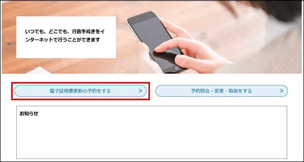 電子証明書の有効期限通知書を受け取った住民様が電子証明書更新の予約をする手順についてご説明いたします。