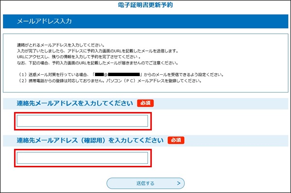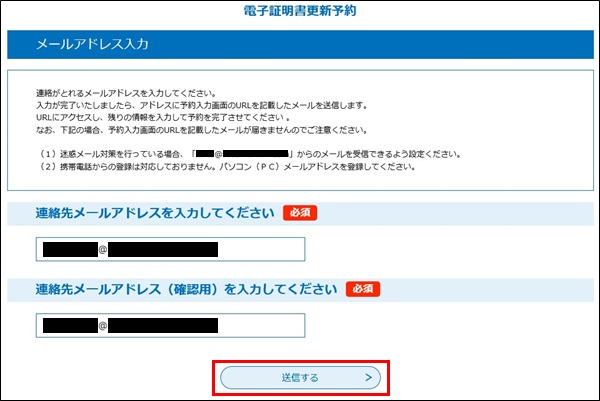 C 入力したメールアドレスに間違いがなければ、[送信する]ボタンをクリックしてください。