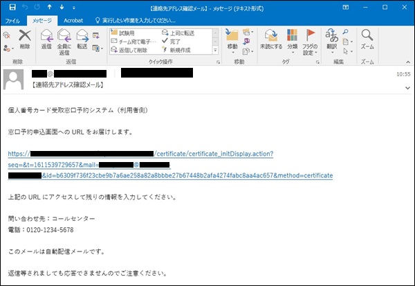 ● メールの表題、文面は自治体様によって若干異なることがあります。