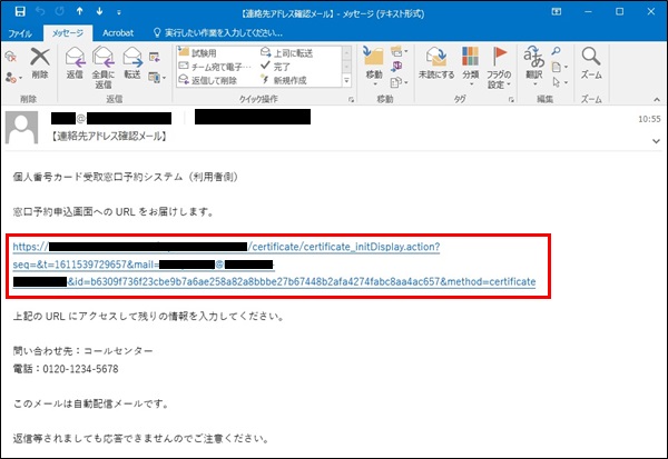 F メール本文に記載されている窓口予約申込画面へのURLリンクをクリックしてください。