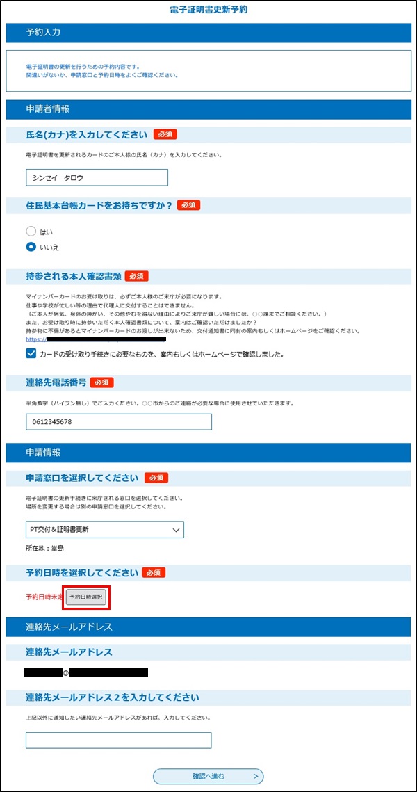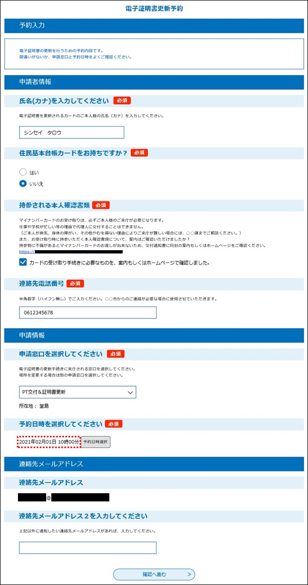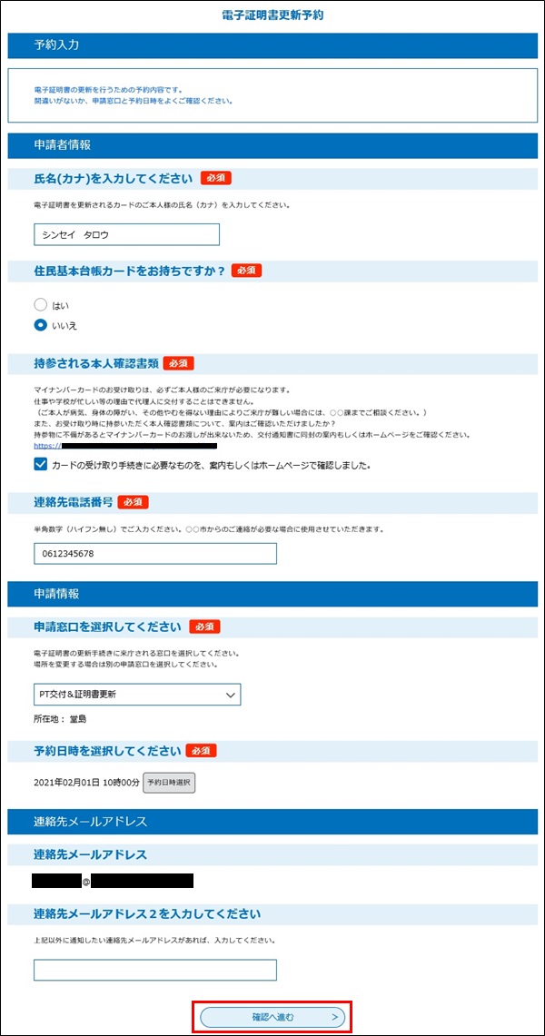 問題がなければ、[確認へ進む]ボタンをクリックしてください。