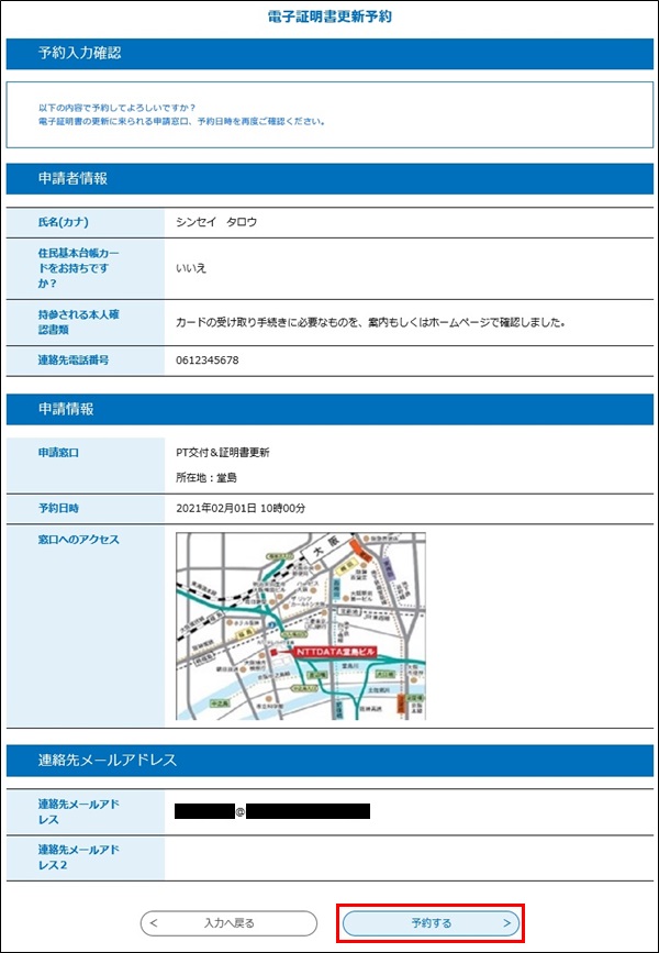 問題がなければ、[予約する]ボタンをクリックしてください。