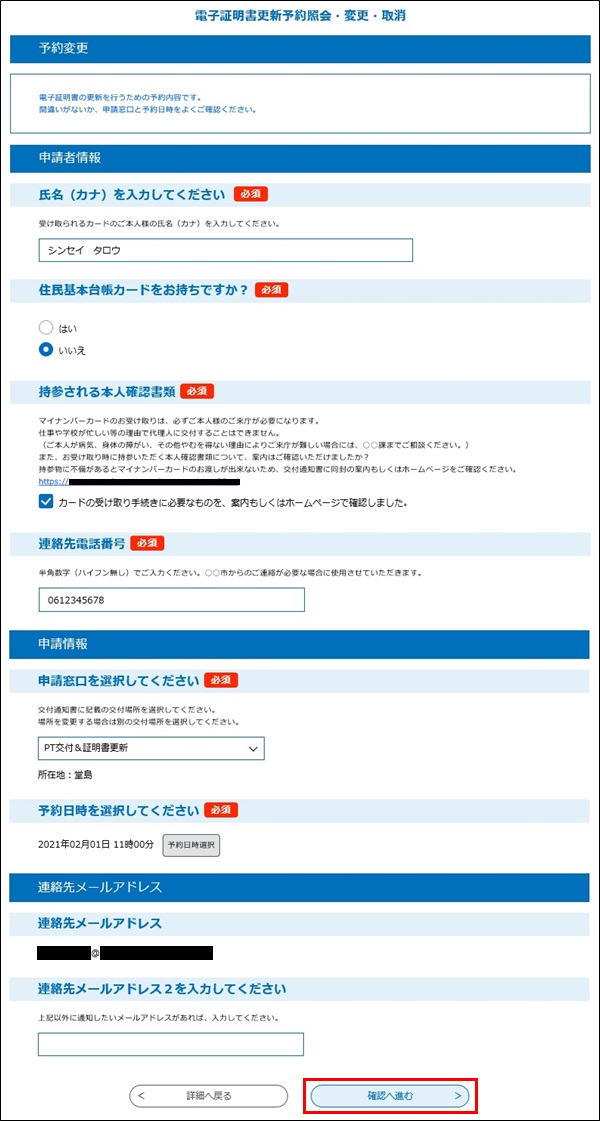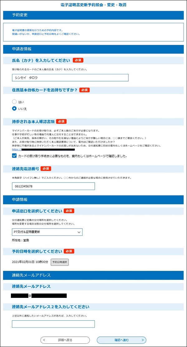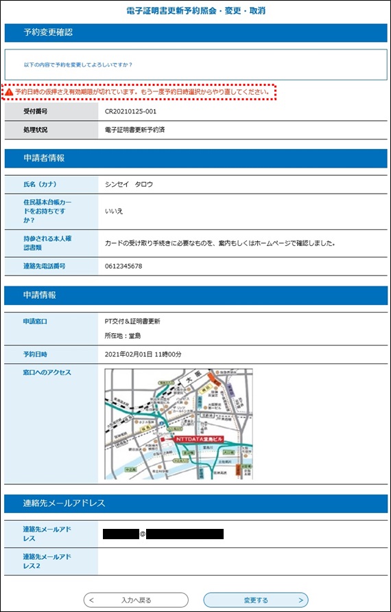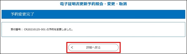 ● 予約日時の都合が悪くなった場合、電子証明書更新予約情報の変更から