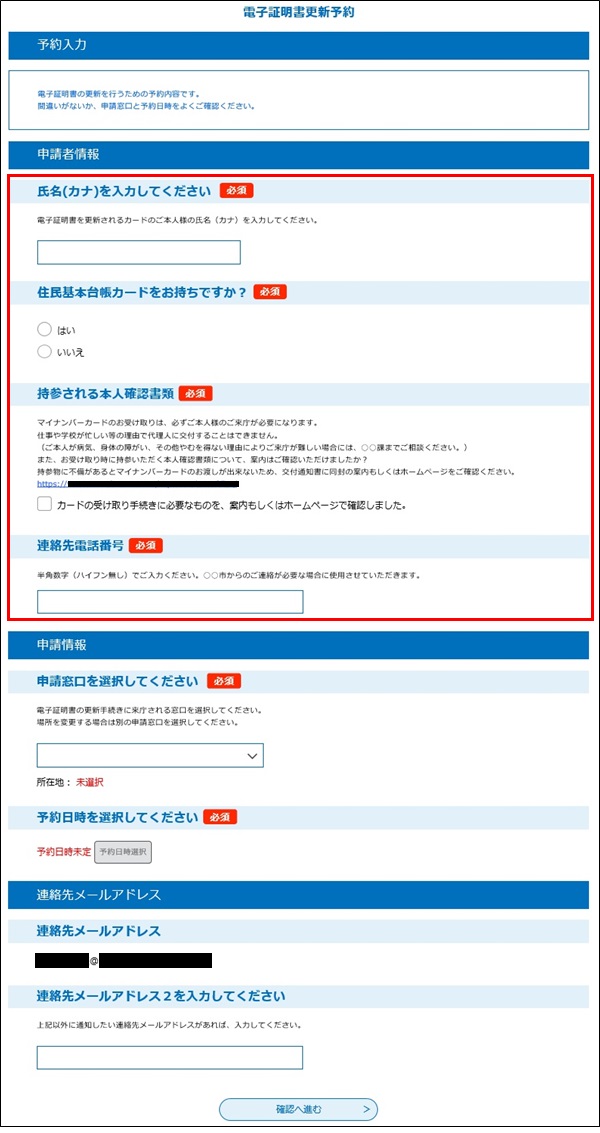問題がなければ、[確認へ進む]ボタンをクリックしてください。