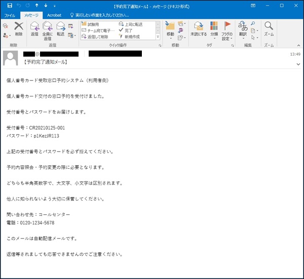 ● ご自身で予約した覚えがない場合、自治体様の個人番号カード交付担当までご連絡ください。