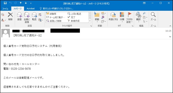 ● メールの表題、文面は自治体様によって若干異なることがあります。