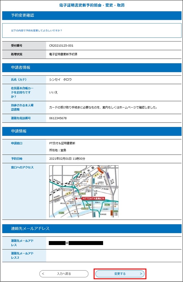 表示内容を確認し、間違いがなければ[変更する]ボタンをクリックしてください。